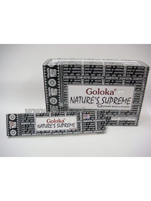 Incenso da casa Goloka em qualidade masala, aroma com mistura especial de flores e raízes, com um toque adocicado.