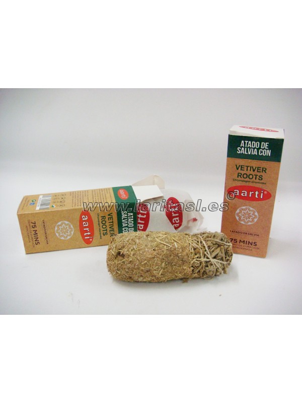 Tocha de sálvia (Salvia Officinalis) com Vetiver (Chrysopogon zizanioldes). Mede entre 09 e 10cm de largo e tem uma espessura de 3,5-4cm (medidas aproximadas)