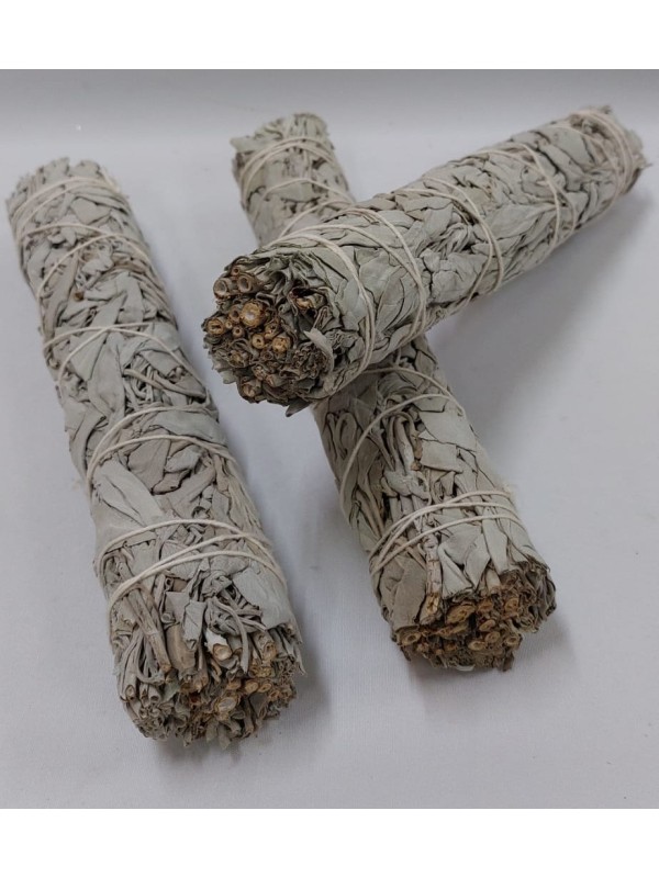 Inúmeras propriedades medicinais e espirituais são atribuídas a sálvia branca. Podemos destacar que é especialmente adequado para limpar uma sala o lugar de más energias, proteger a sala o lugar de vibrações negativas e alcançar um estado de paz e harmonia. O modelo pode diferir da imagem